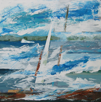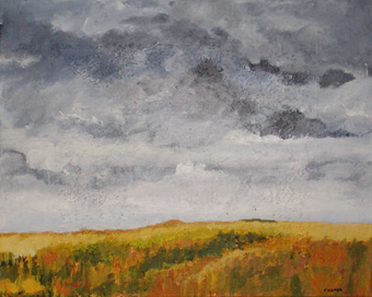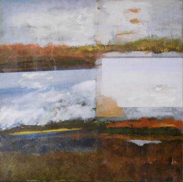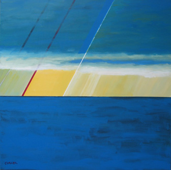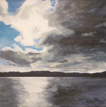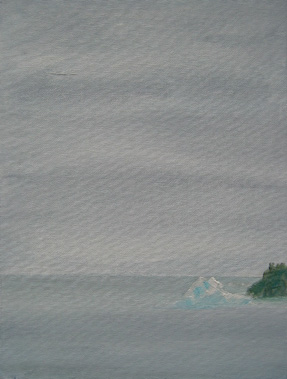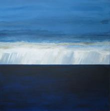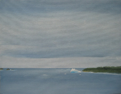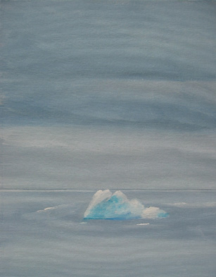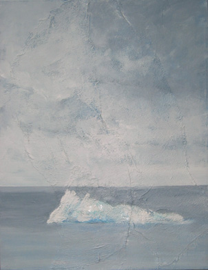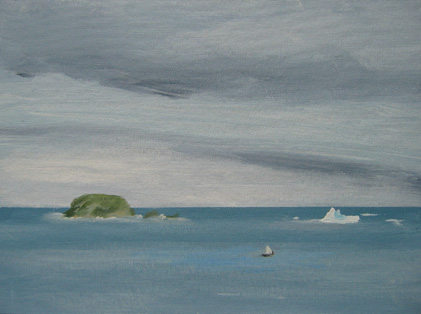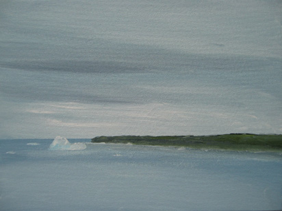 In June 2008 my husband and I spent a week on the eastern most shores of Newfoundland. We were fortunate to have the opportunity to watch an iceberg cross the bay in front of our holiday cottage. I completed eight quick sketches (acrylic on canvas board) as we watched the progress of the iceberg over two days and have since revisited these images to create larger canvases, inspired by the powerful experience of our visit to “The Rock.”